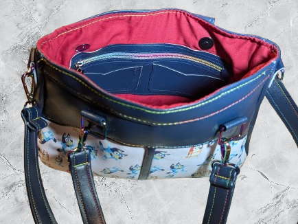 This handcrafted Regan Bag, made from the Notorious Alice pattern, is designed for makers and fashion lovers who appreciate structure and versatility. The bag features a clean rectangular silhouette with a signature arched front panel, dual rolled handles, and a detachable adjustable crossbody strap for flexible carrying options.