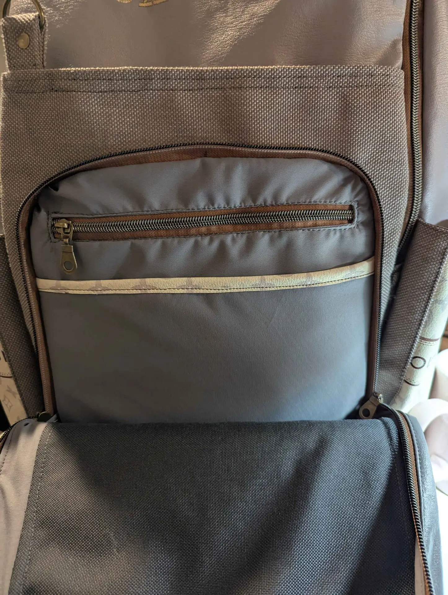 Structured 3D front pocket with hidden zipper + slip pockets on the inside back wall