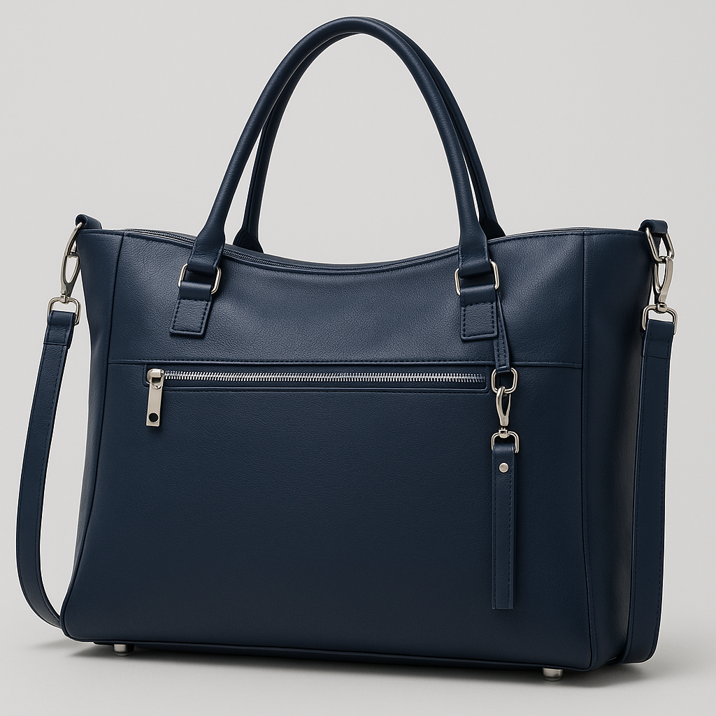 Inside, you’ll find a recessed zipper closure for security, a divided slip pocket to keep items tidy, and a zippered pocket for valuables. An optional padded laptop sleeve makes it ideal for work or travel. On the outside, a zip pocket and slip pocket add quick-access storage. The structured design and thoughtful hardware placements give the tote a professional, polished finish.